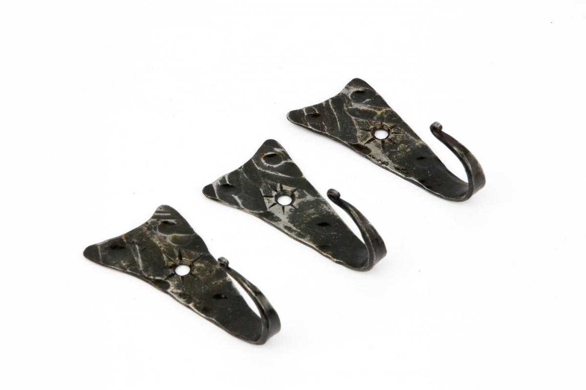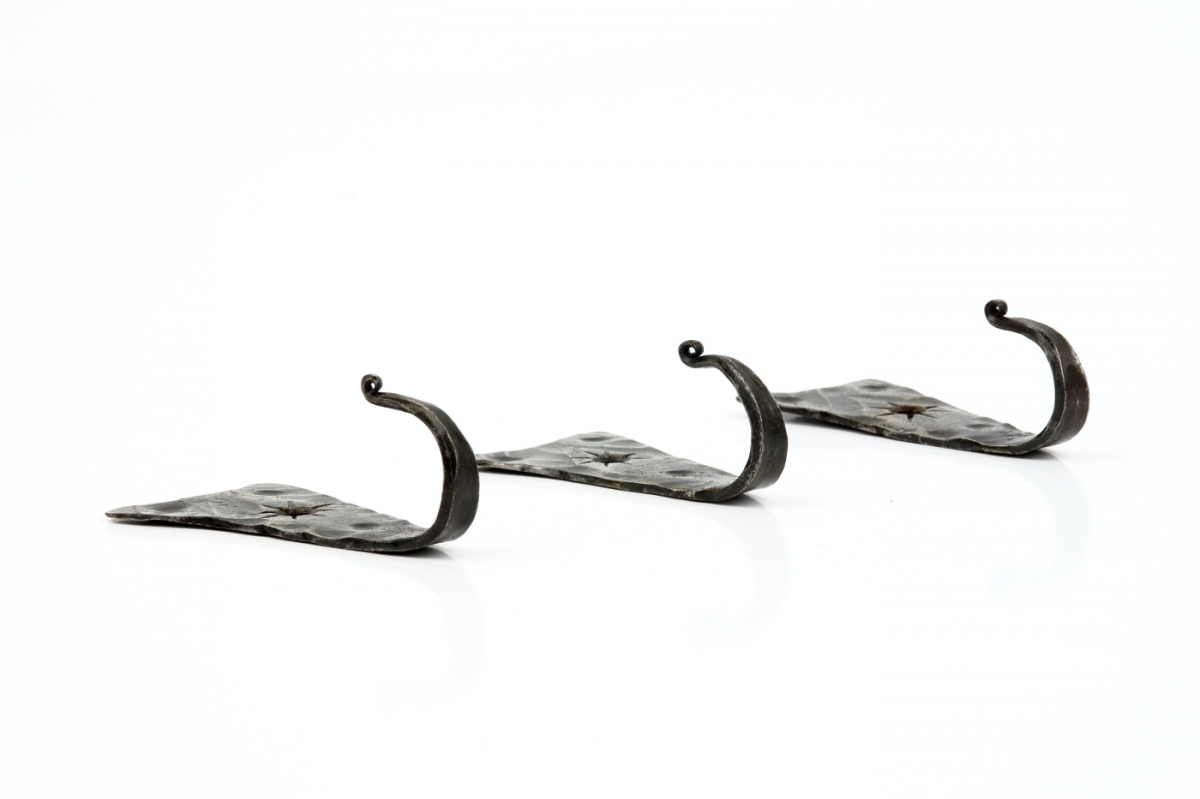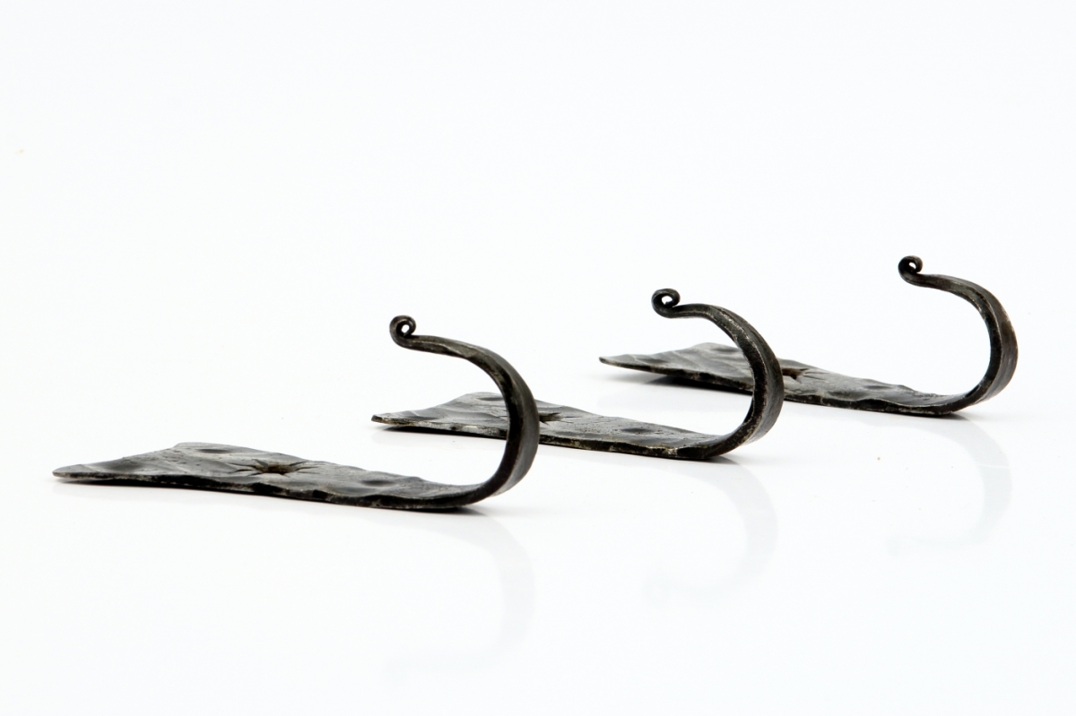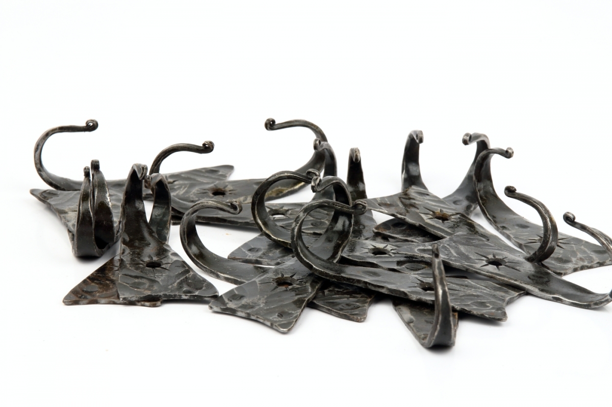 Věšák na klíče je ručně kovaný kousek originálního tvaru s ozdobným tepáním. Háček je zakončen torzírováním (zakroucením). Kovářskou barvou je vytvořena na věšáku zajímavá patina.