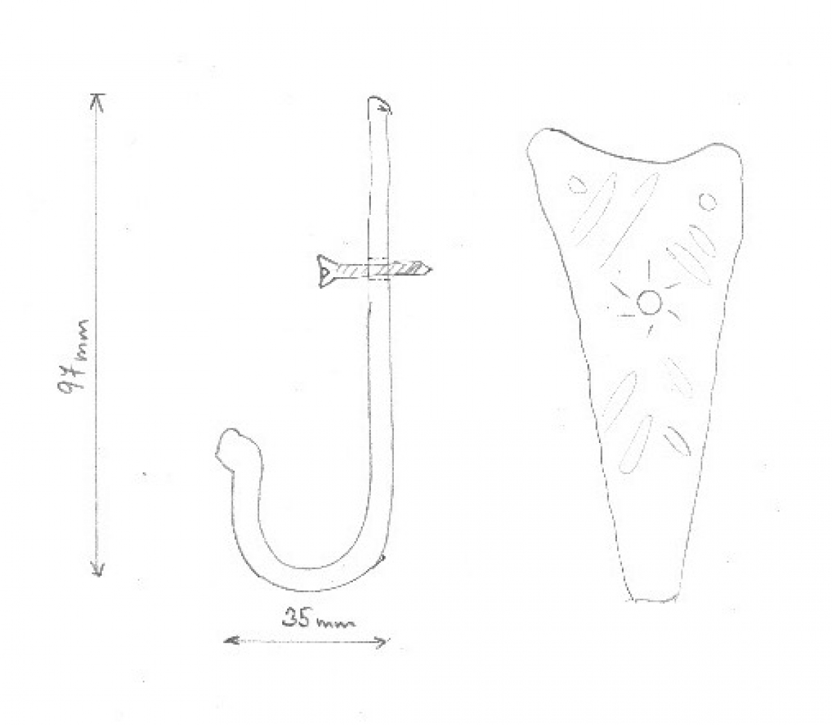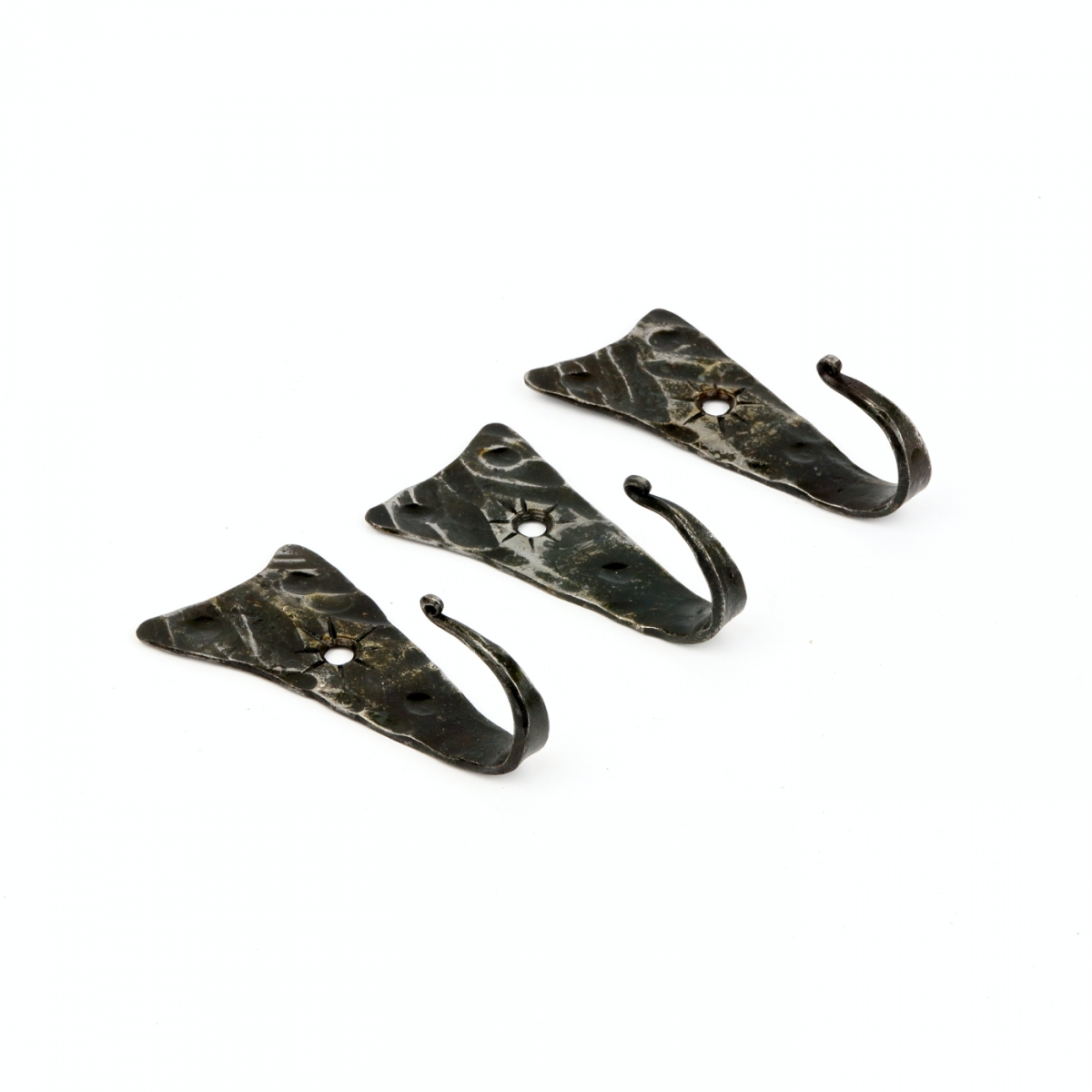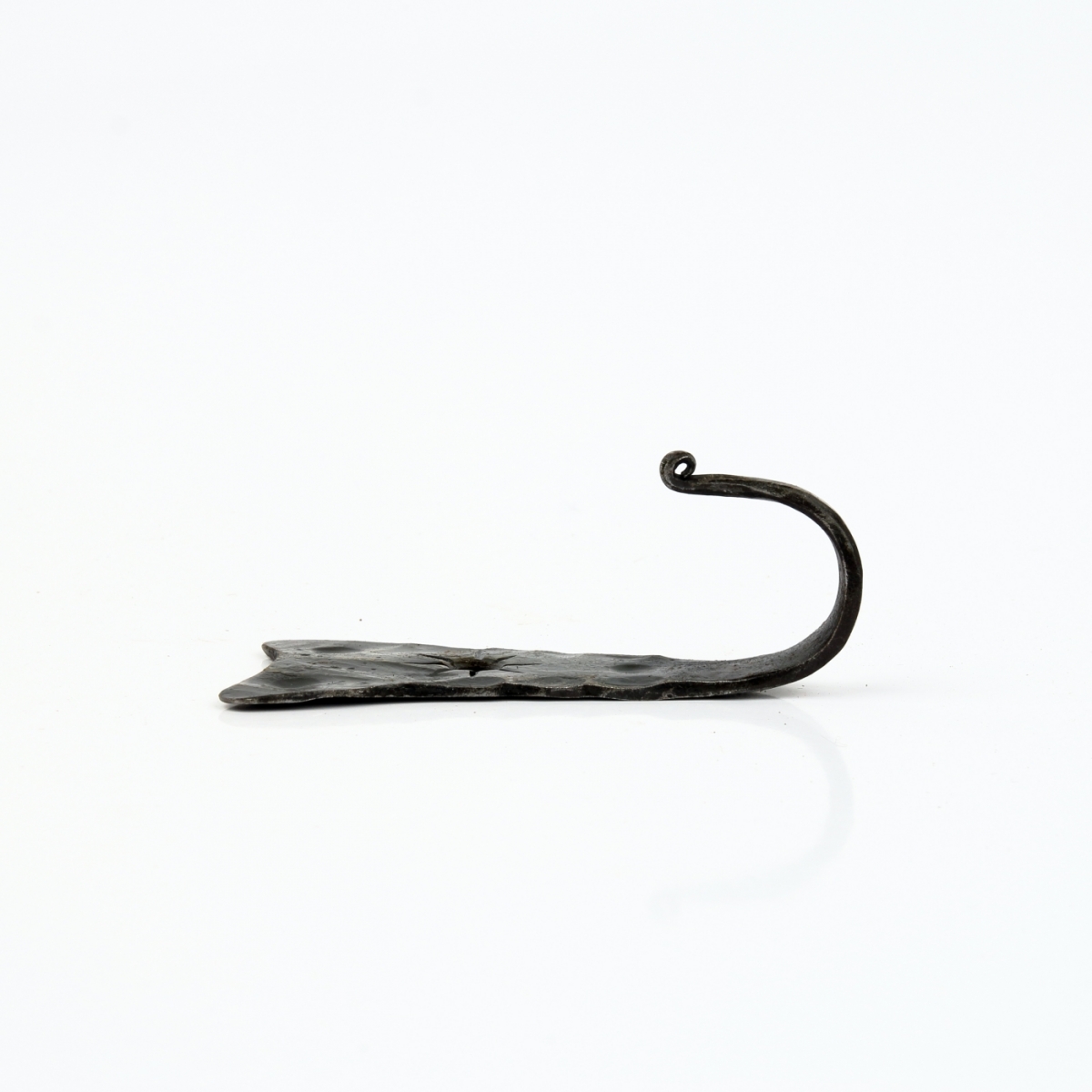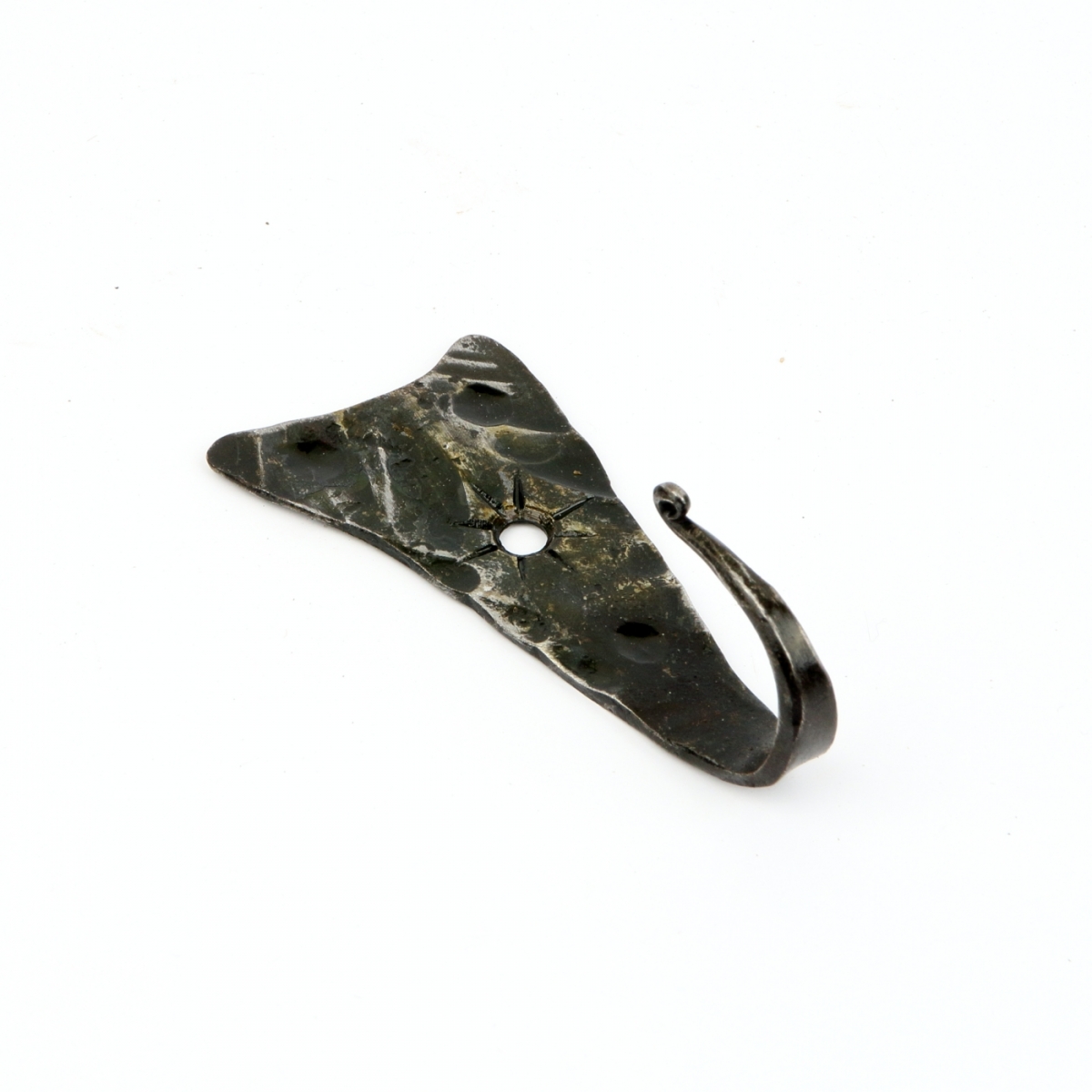 Věšák na klíče je ručně kovaný kousek originálního tvaru s ozdobným tepáním. Háček je zakončen torzírováním (zakroucením). Kovářskou barvou je vytvořena na věšáku zajímavá patina.
