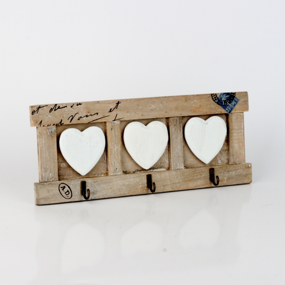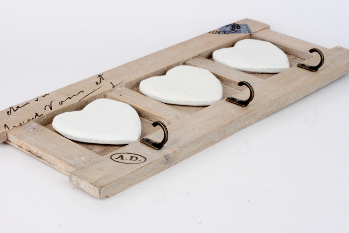 Věšák na klíče 3 háčky srdce 32x13cm