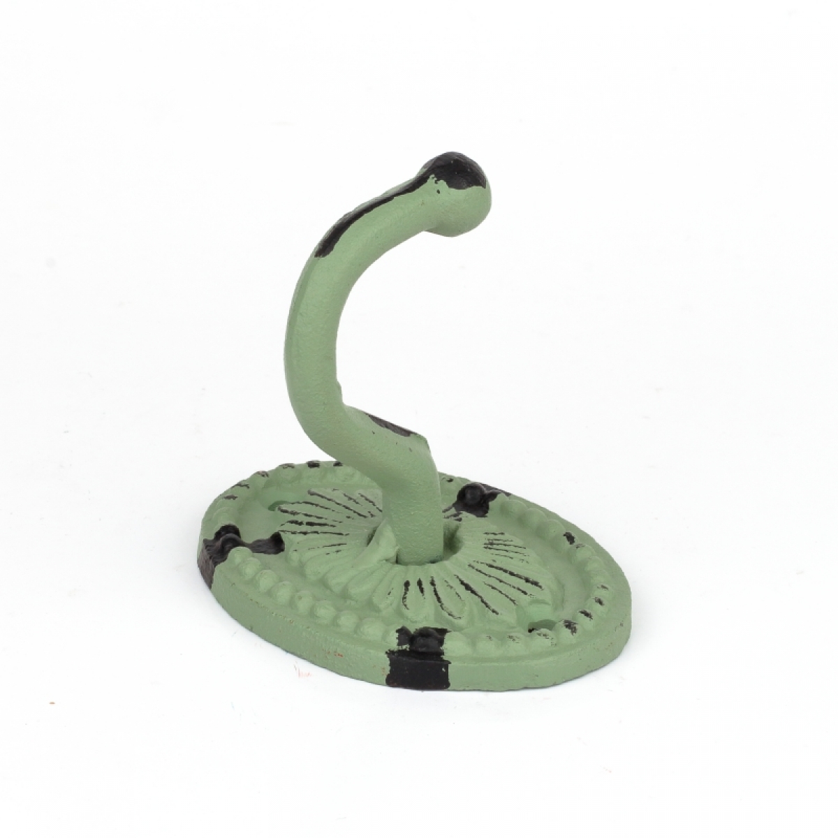 Rozměry: litinová podesta ve tvaru oválu 8,5x6cm, výška háčku 8cm