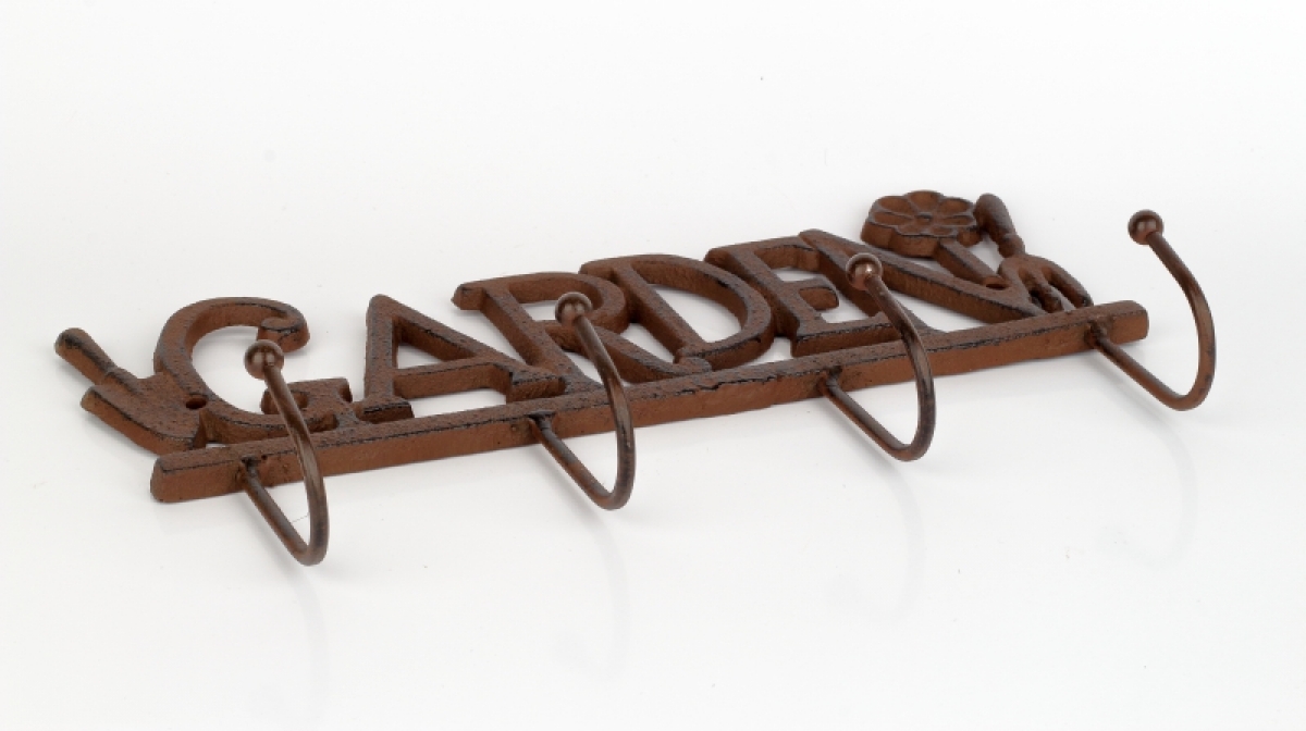 Kovový věšák na zahradu GARDEN 30,0x5,5x17,6 cm na zavěšení zahradního nářadí, rukavic, zástěry a dalších drobností, které se při práci na zahradě hodí mít po ruce.