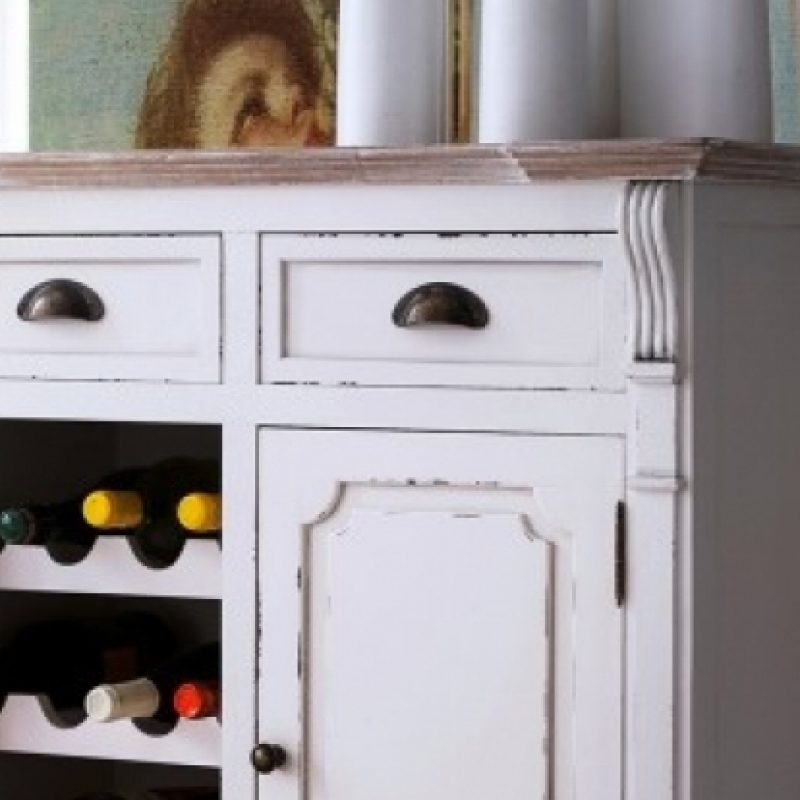 Vinotéka SAVOY je bílá, dřevo je zčásti soustružené. Radost vám může dělat již za tři dny od objednání.