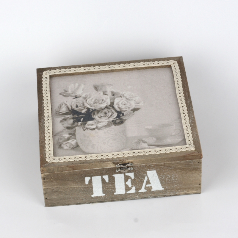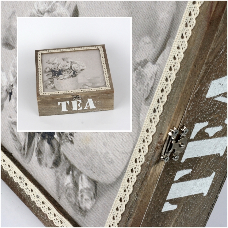 Vintage krabička na čaj 23x23cm s devíti přihrádkami, díky kterým vždy budete vědět, kam pro který druh čaje sáhnout.