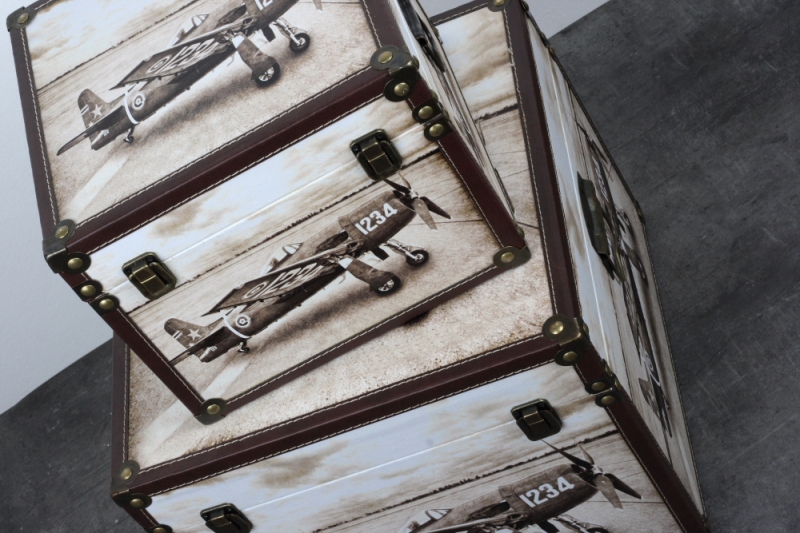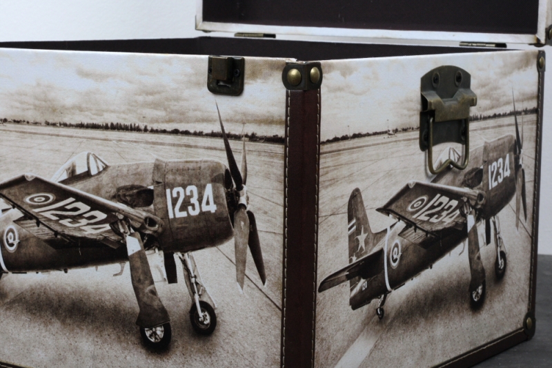 Vintage kufr letadlo 27x27x21cm jako stylová dekorace a úložný prostor, který se vždy hodí.