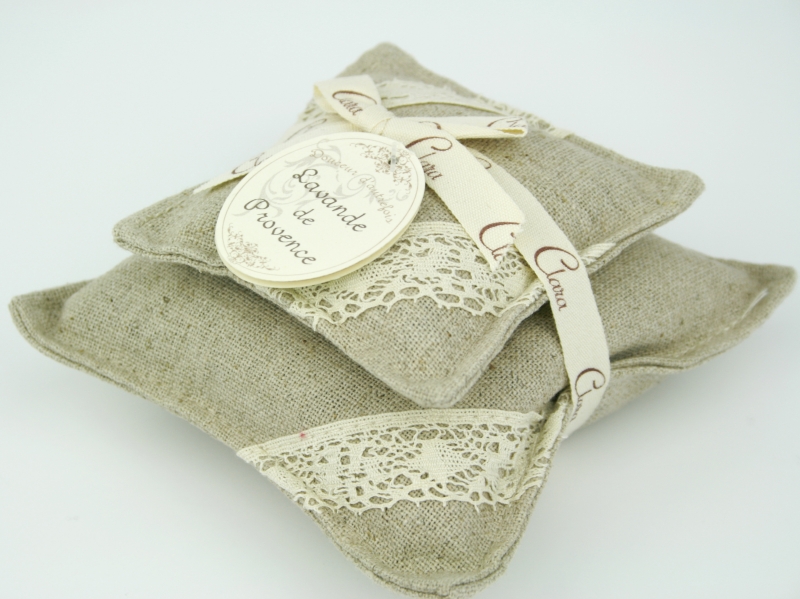Voný sáček je z režné látky zdobený krajkou. Sada dvou kusů.