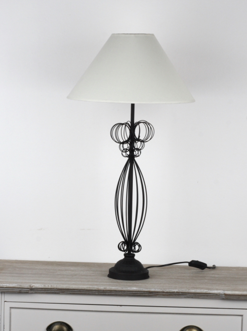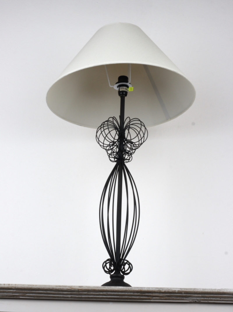 Lampa má podstavec z proplétaného kovu, který tvoří krásné "buclaté" tělo lampy. Světlý odstín stínidla je velmi univerzální a barevně tak zapadne do každé místnosti.