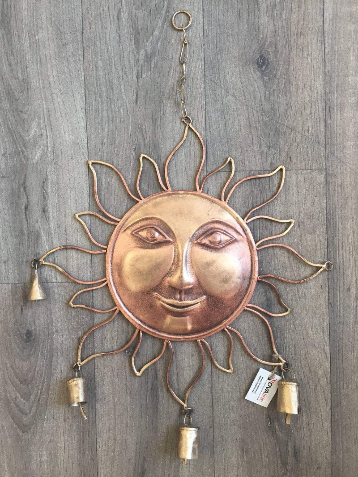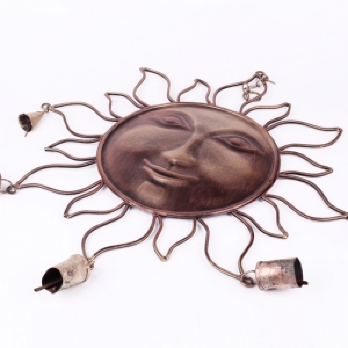 Krásné kovové slunce se hodí jako dekorace na střešní štít, nebo na fasádu domu. Zvonečky příjemně cinkají a přinesou tak energii k Vám do domu.