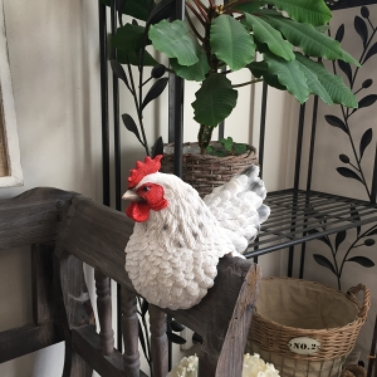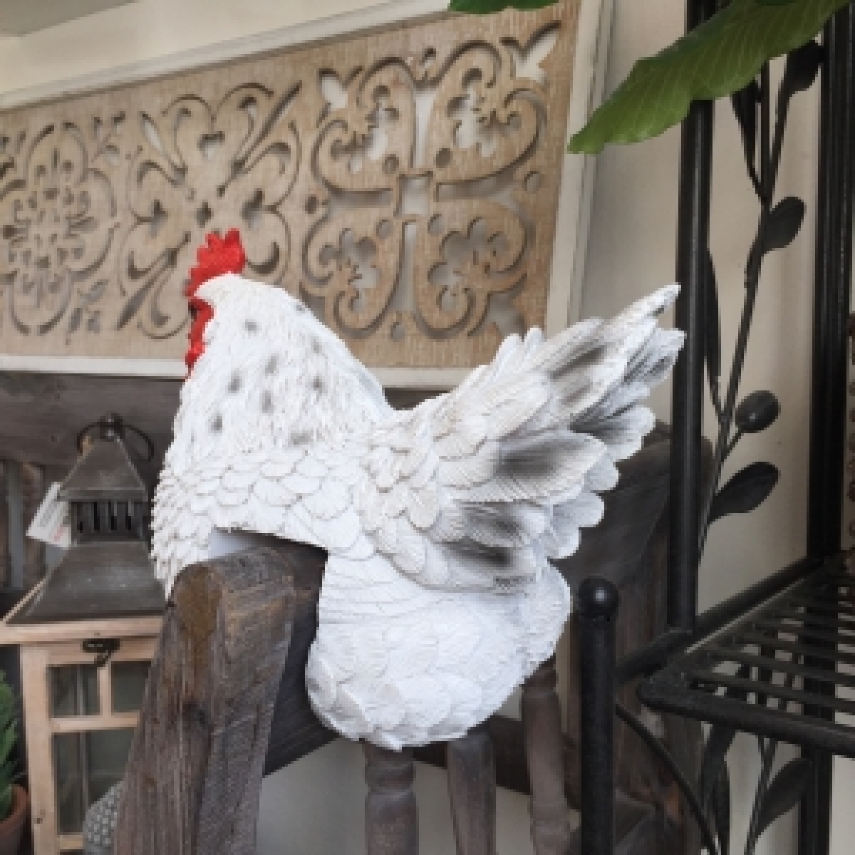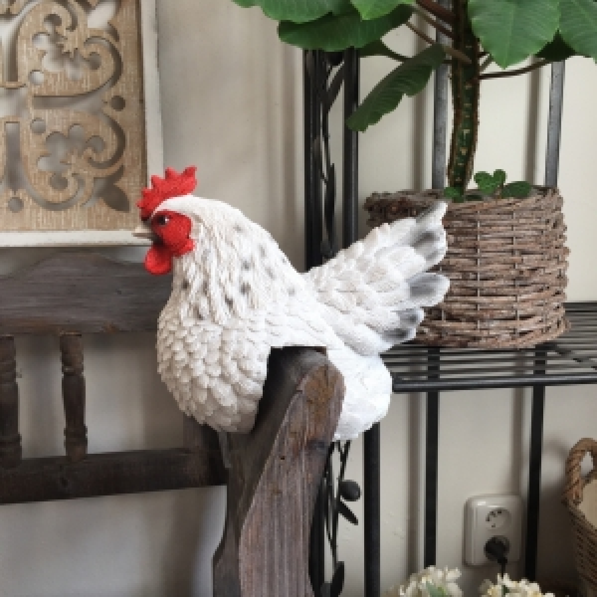 Zahradní dekorace slepice na plot bílá - vyřazeno