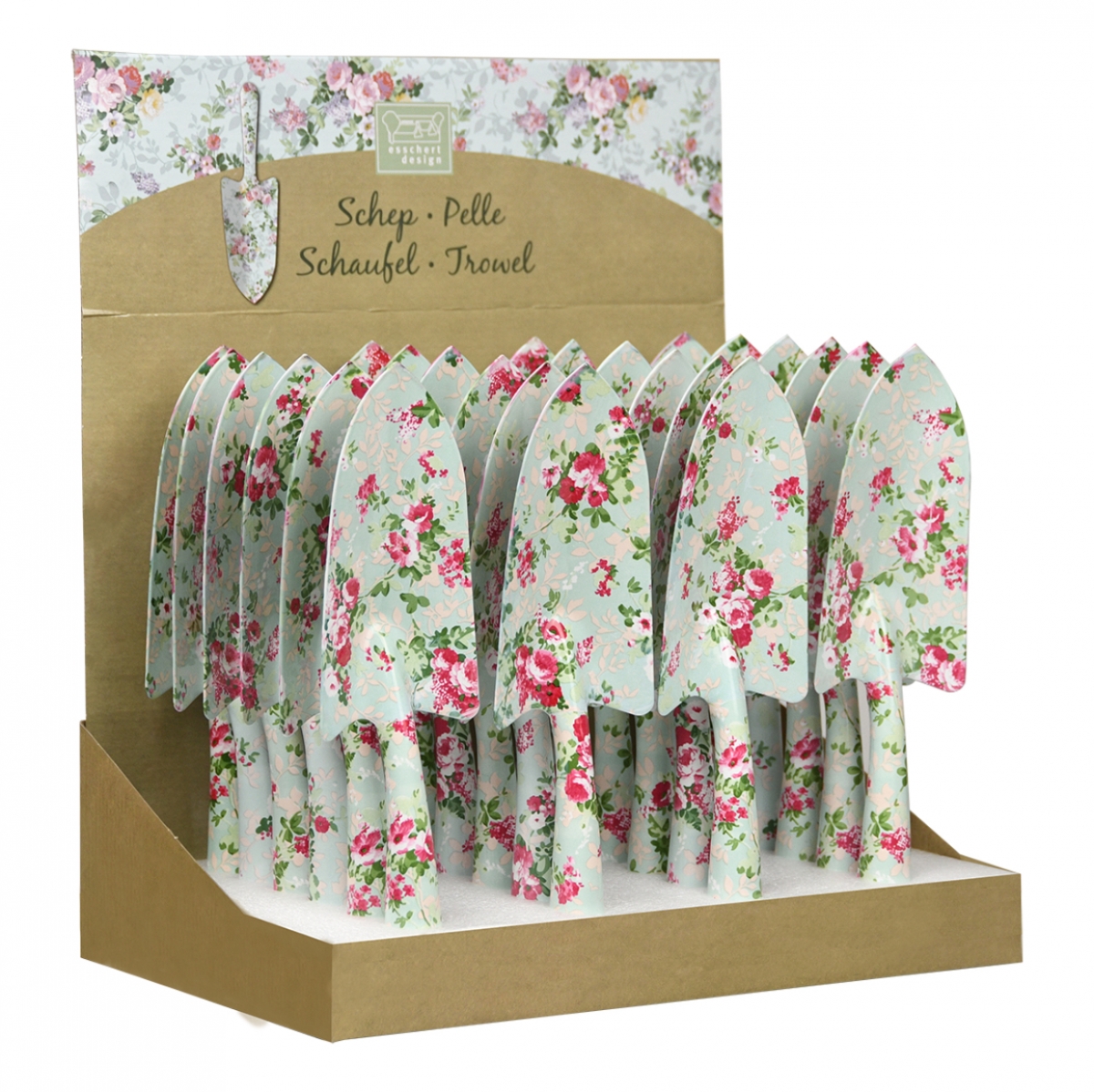 Zahradní lopatka může být stylovým kouskem! Tato, s celoplošným potiskem růží, rozhodně zaujme na první pohled a nad její jemnou barevností zaplesá každé romantické srdce. Motiv růžových růží, se zelenými a šedými lístky, vyniká na světle modrém podkladě.