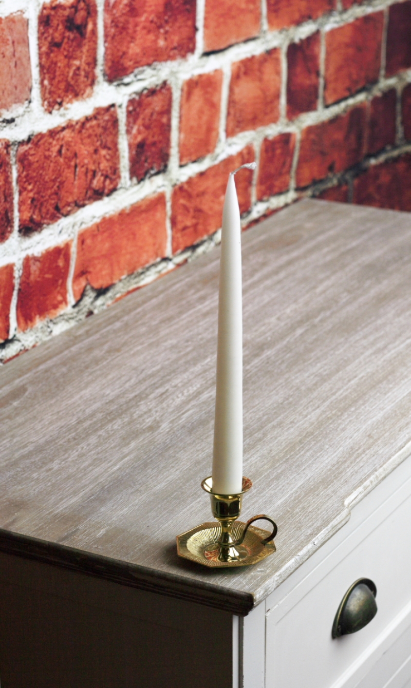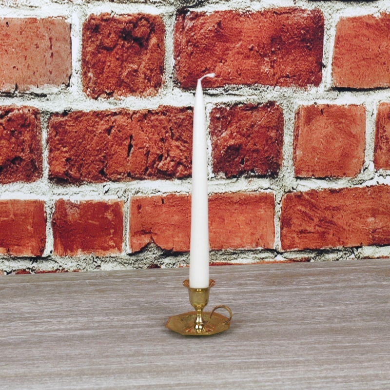 Krásný mosazný svícen s ouškem na přenášení je stylovým doplňkem do venkovsky laděných interiérů.