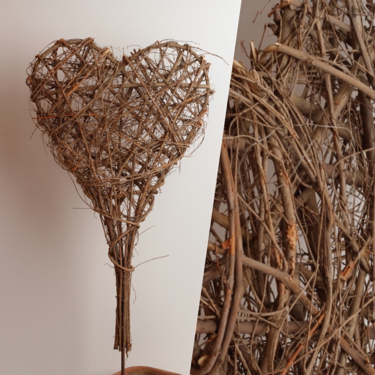 Zápich do trávníku proutěné srdce hnědé 40x90x7cm