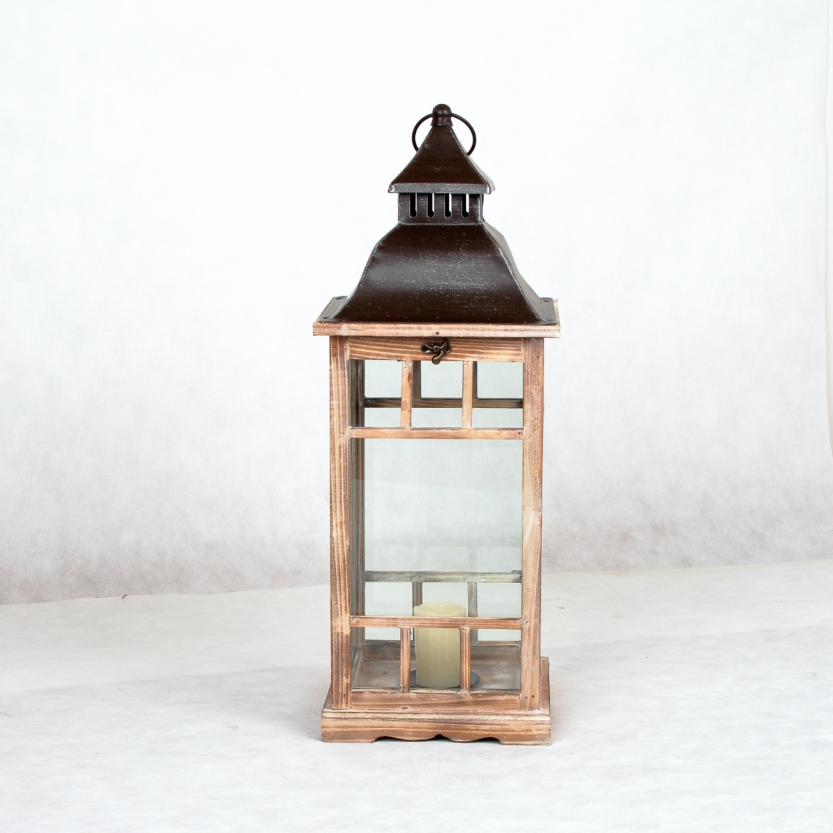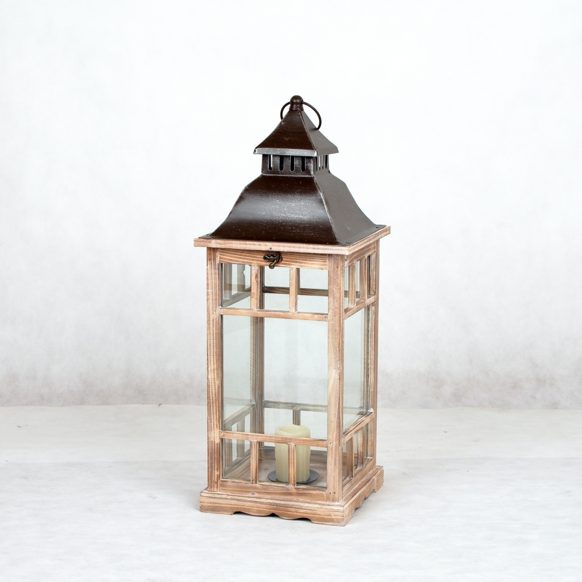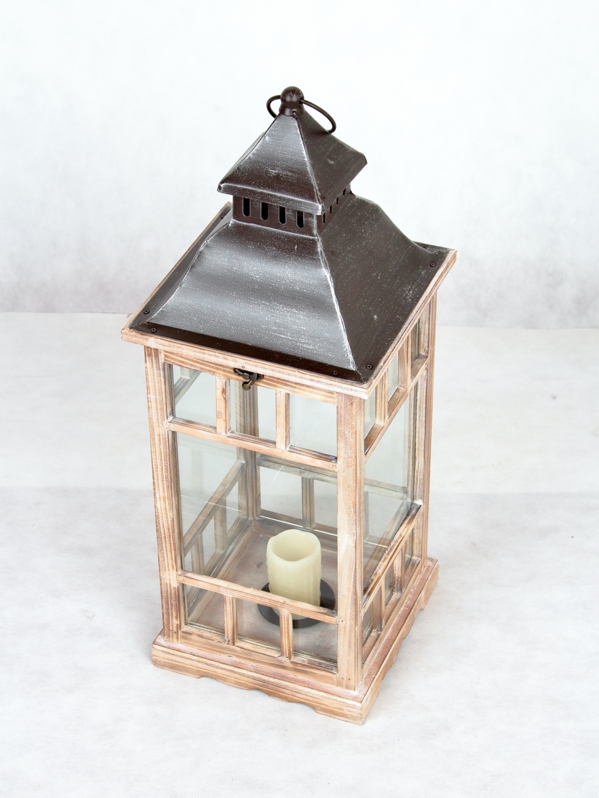 Závěsná lucerna ze dřeva ve střední velikosti, vhodná také na postavení na terasu