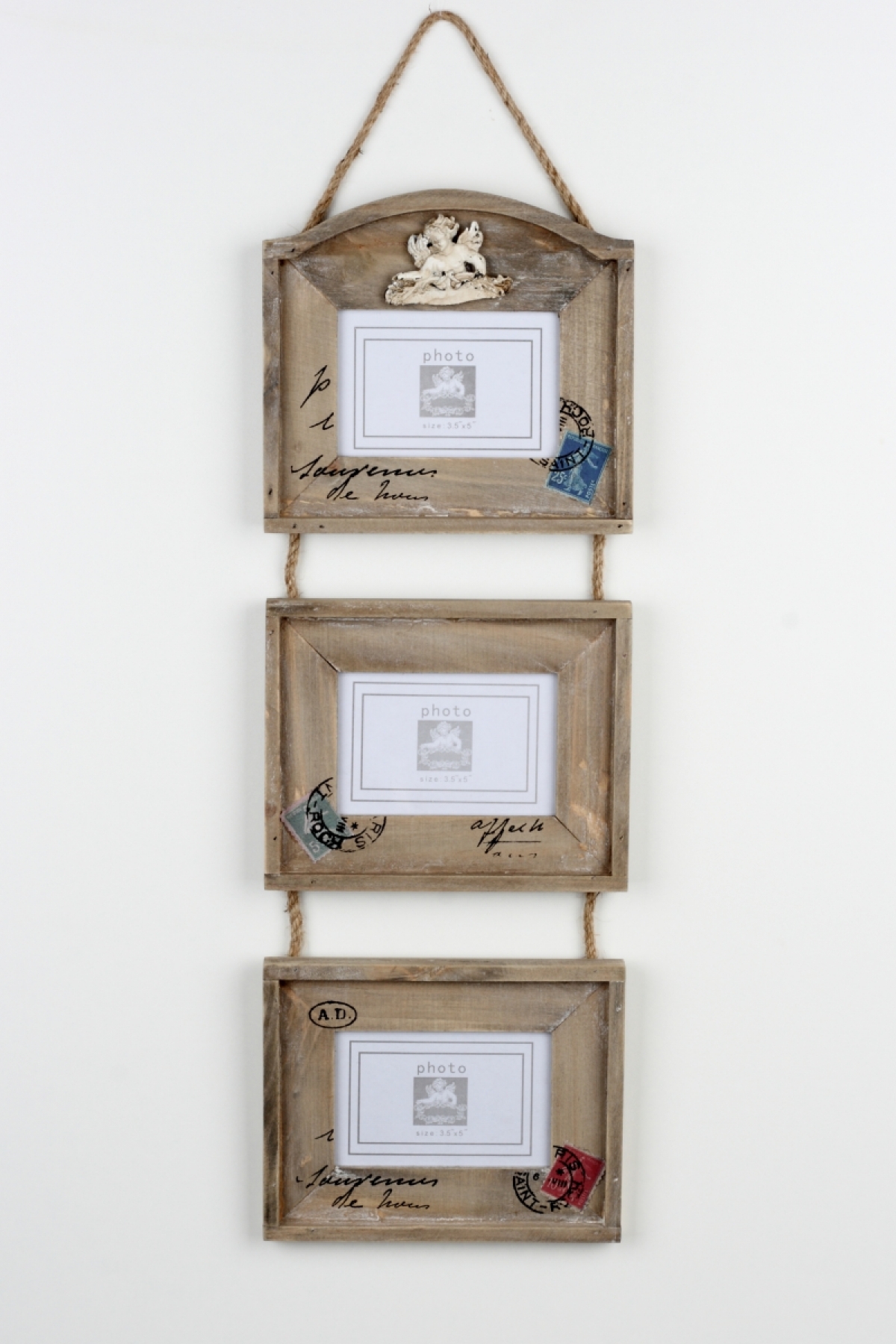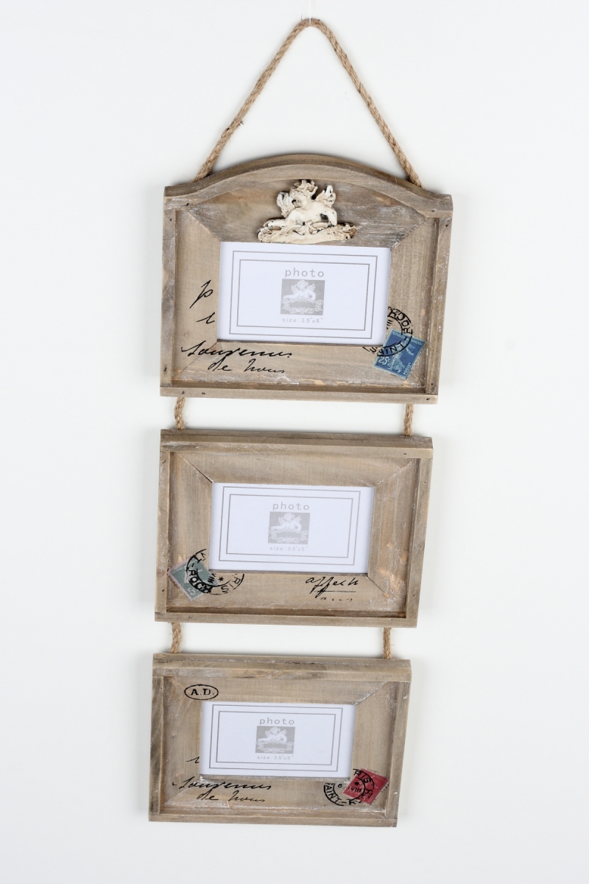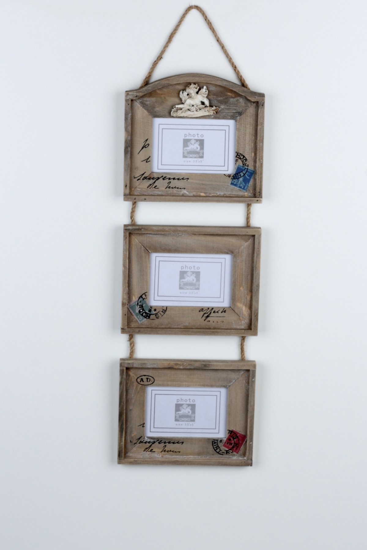 Závěsný foto rámeček na tři fotografie 58cm v oblíbeném vintage stylu rozzáří Vaše holé stěny.