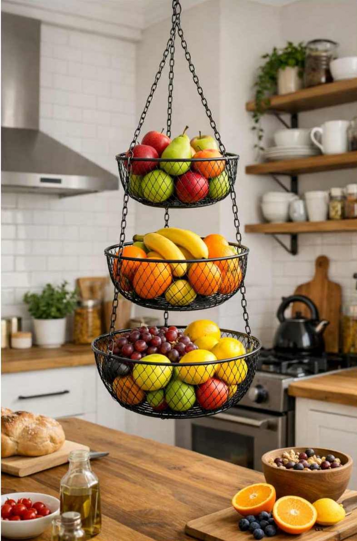 Někdy stačí malá změna a kuchyně začne působit vzdušněji, klidněji a přirozeně uspořádaně. Tento závěsný koš na ovoce uvolní pracovní plochu a vytvoří místo, které vás bude každý den nenápadně těšit. Ovoce visí ve výšce, je na očích – a přesně proto se rychleji spotřebuje.