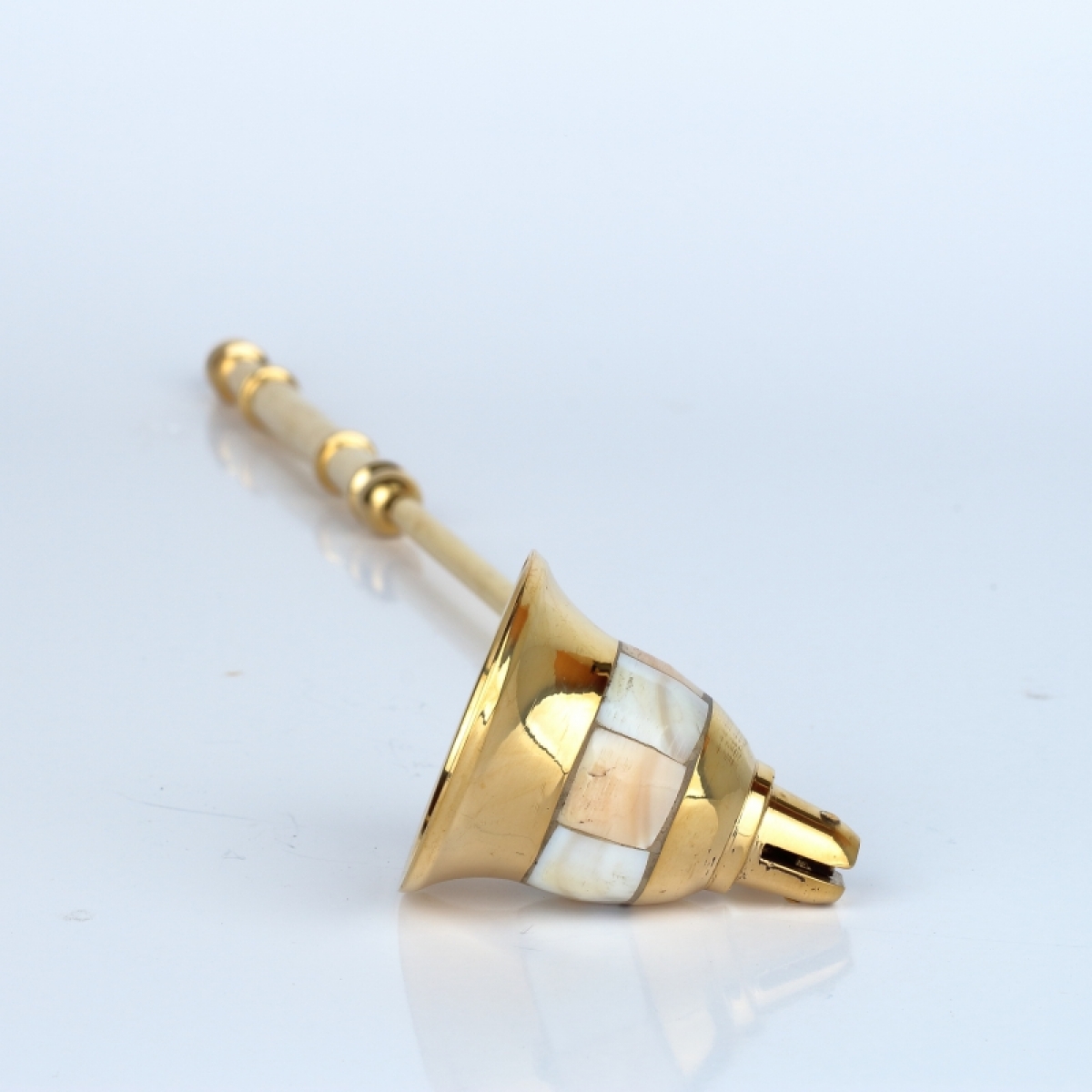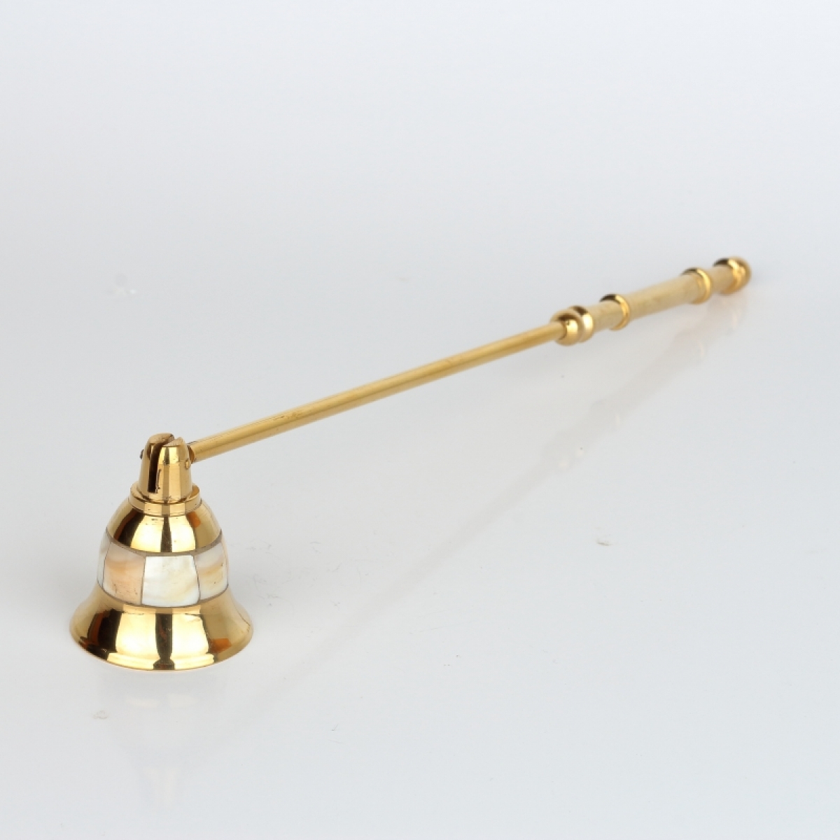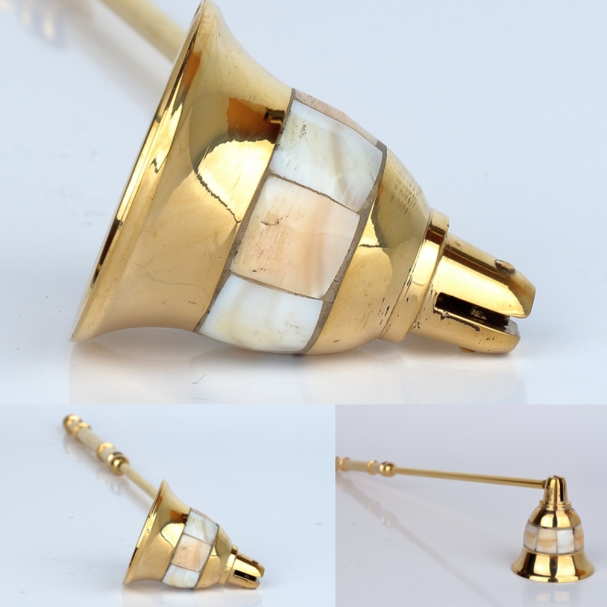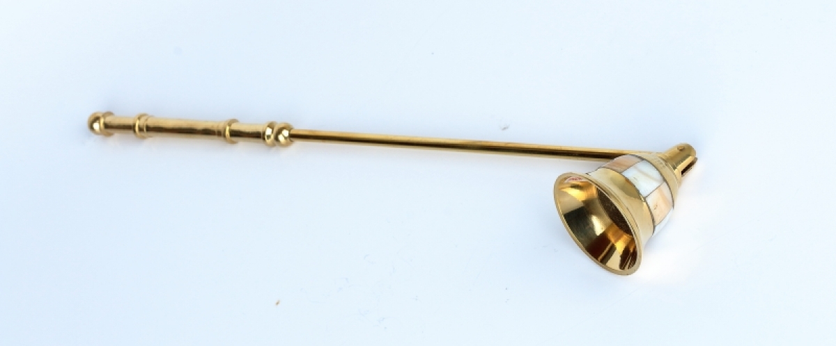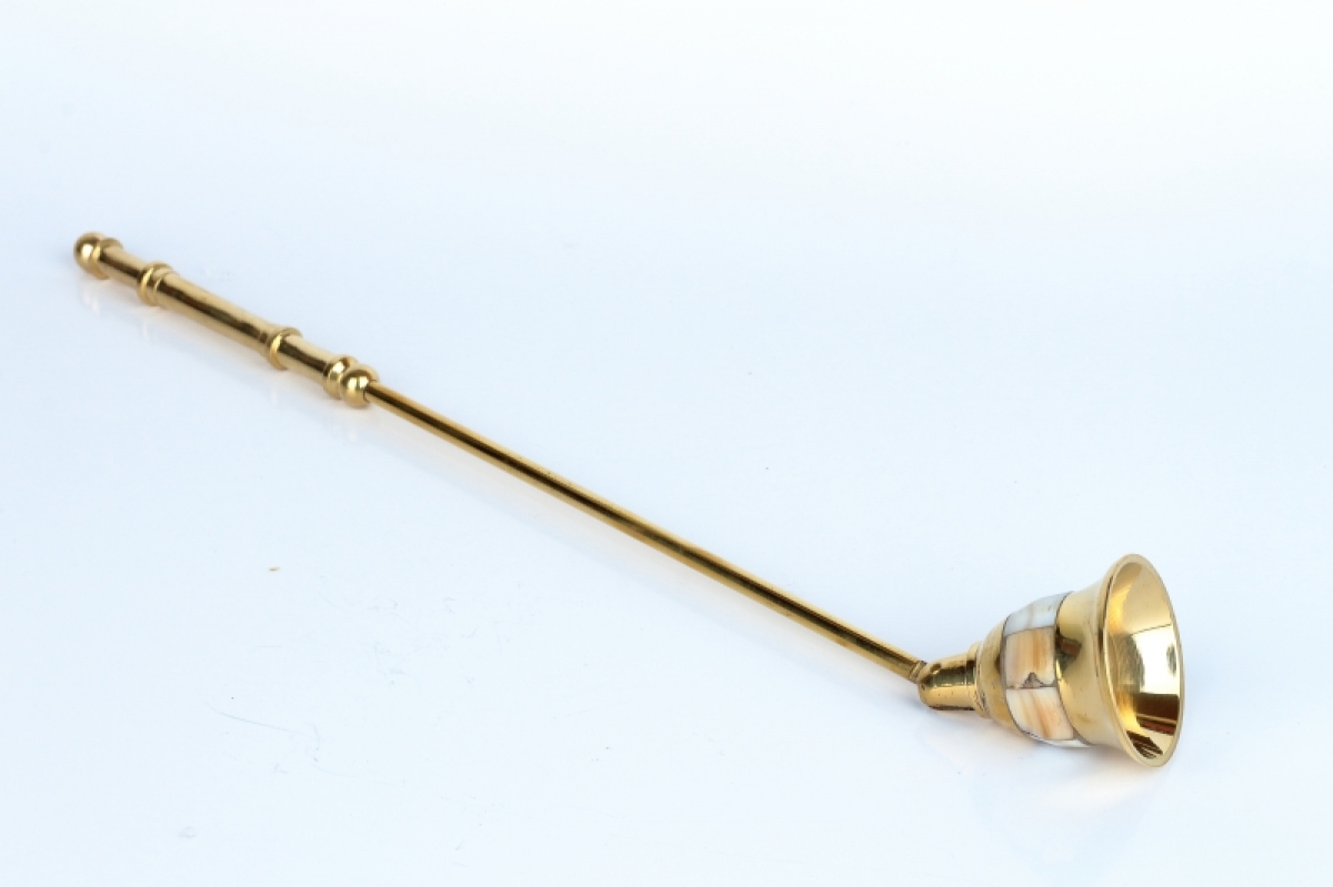 Celomosazné zhášedlo na svíčky je krásně ozdobené po celém obvodu perletí.