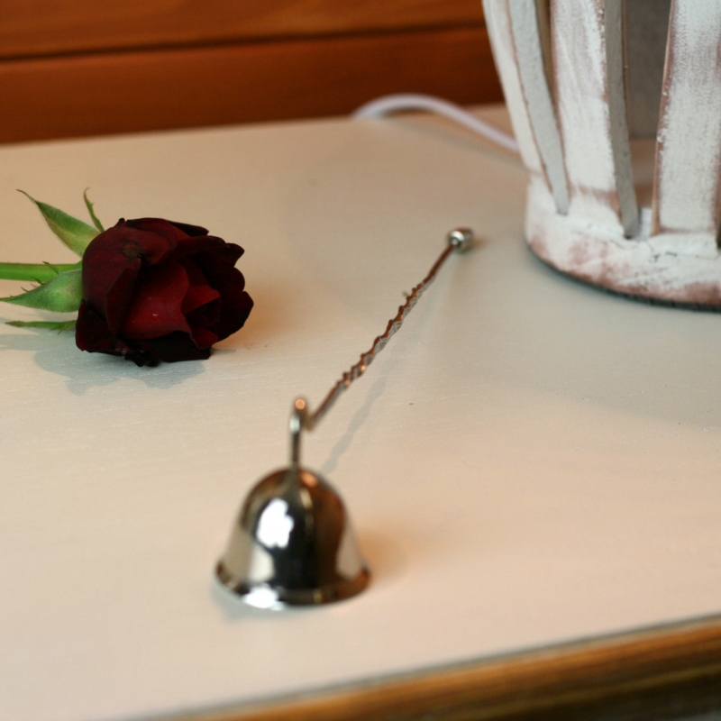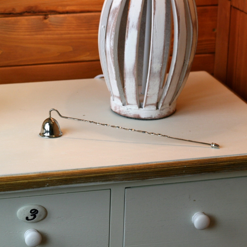 Zhasínátko na svíčky 27cm potěší všechny, kterým se už jistě párkrát stalo, že se vosk při sfouknutí vylil na stůl. Praktické zhasínátko zabrání těmto situacím a především dalším zničeným stolům a ubrusům. Zhasínátko má ozdobné kroucené madlo v zámeckém stylu.