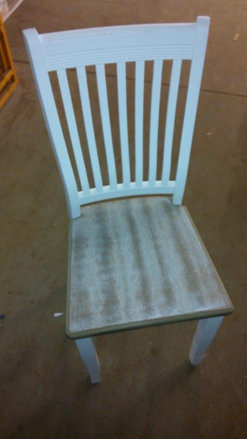 Patří ke stylu vintage, má bílou barvu, sedací část je v přírodním tónu.