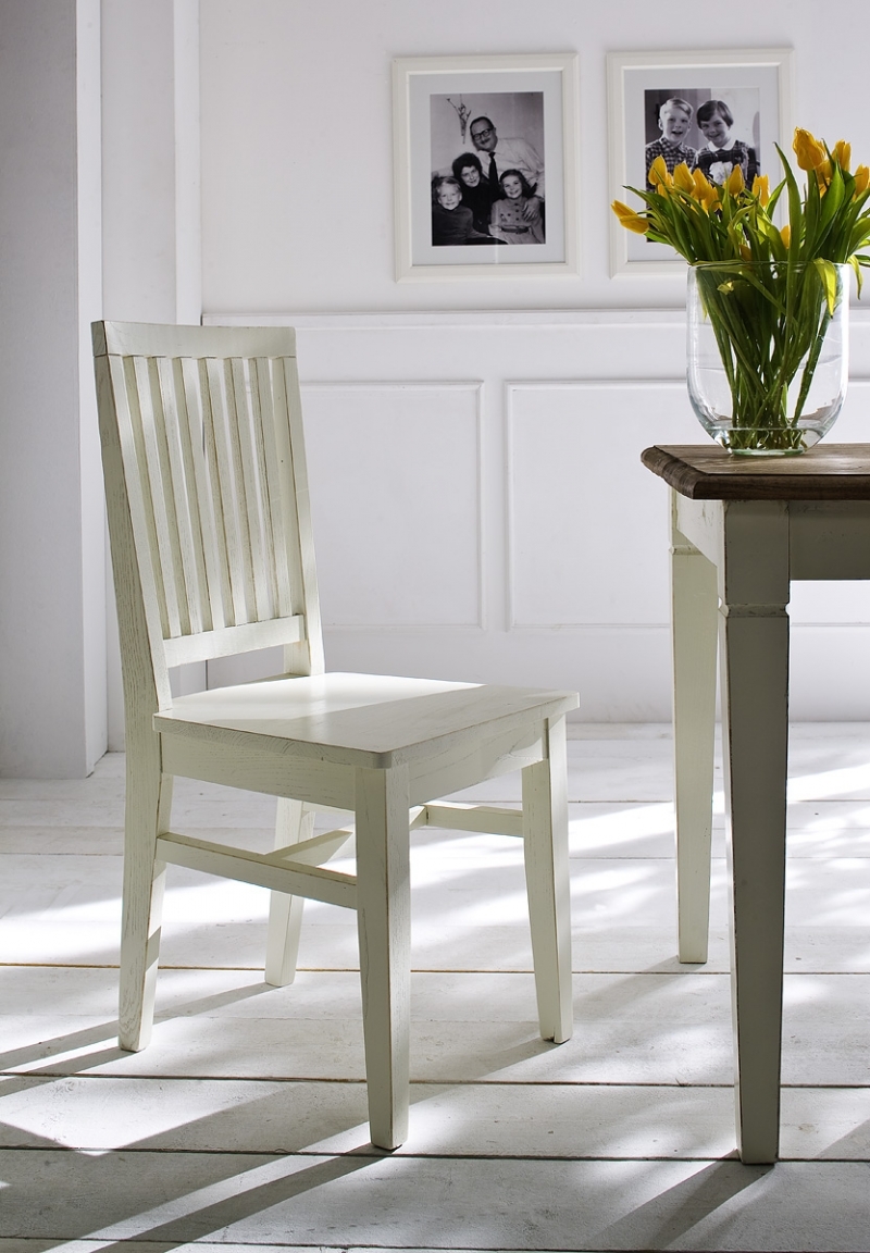 Prostá dřevěná židle bílé barvy se vám bude líbit stále. Její bytelná dřevěná konstrukce slibuje, že budete židli moci používat po dlouhý čas.