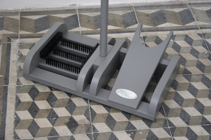Pravá část slouží k vyzouvání bot, levá k očištění bot od nečistot. Uprostřed je dlouhá tyč, kterou celý stojan přidržíte a pohodlně se zbavíte obuvi.