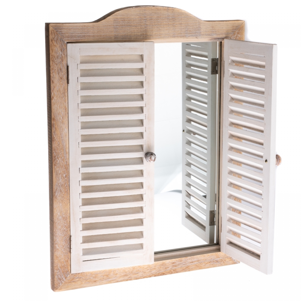 Zrcadlo s dřevěným rámem a okenicemi 45x60x3cm