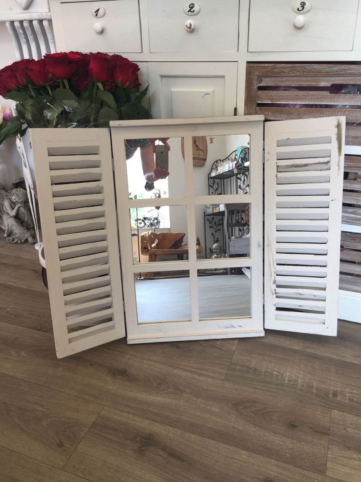 Toto krásné zrcadlo s okenicemi si jako doplněk interiéru ihned zamilujete. Dodá vaší koupelně či pokoji romantický nádech.