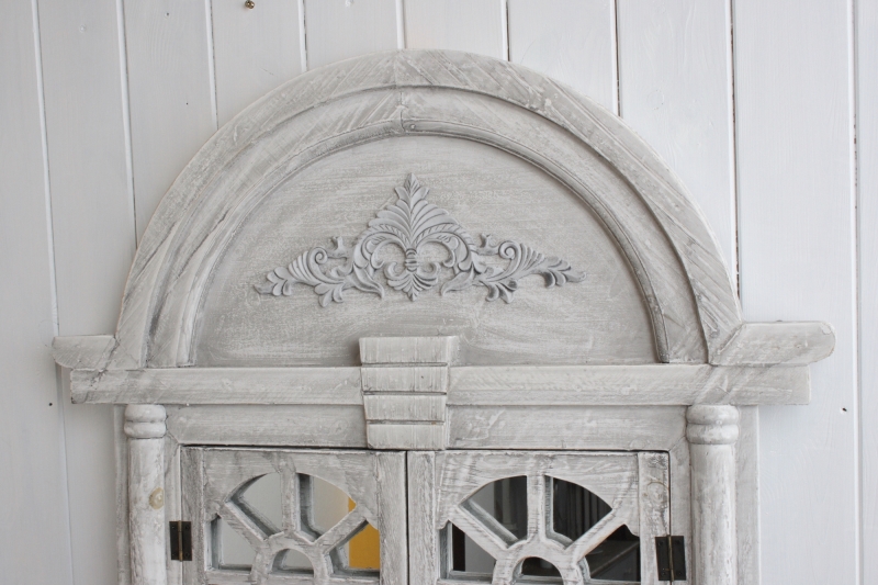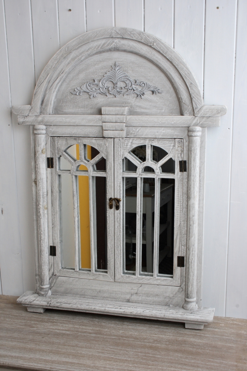 Zrcadlo s okenicemi je oblíbeným doplňkem do interiéru zařízeného ve stylu romantického venkova. Okenice mohou být zavřené, ale i otevřené.