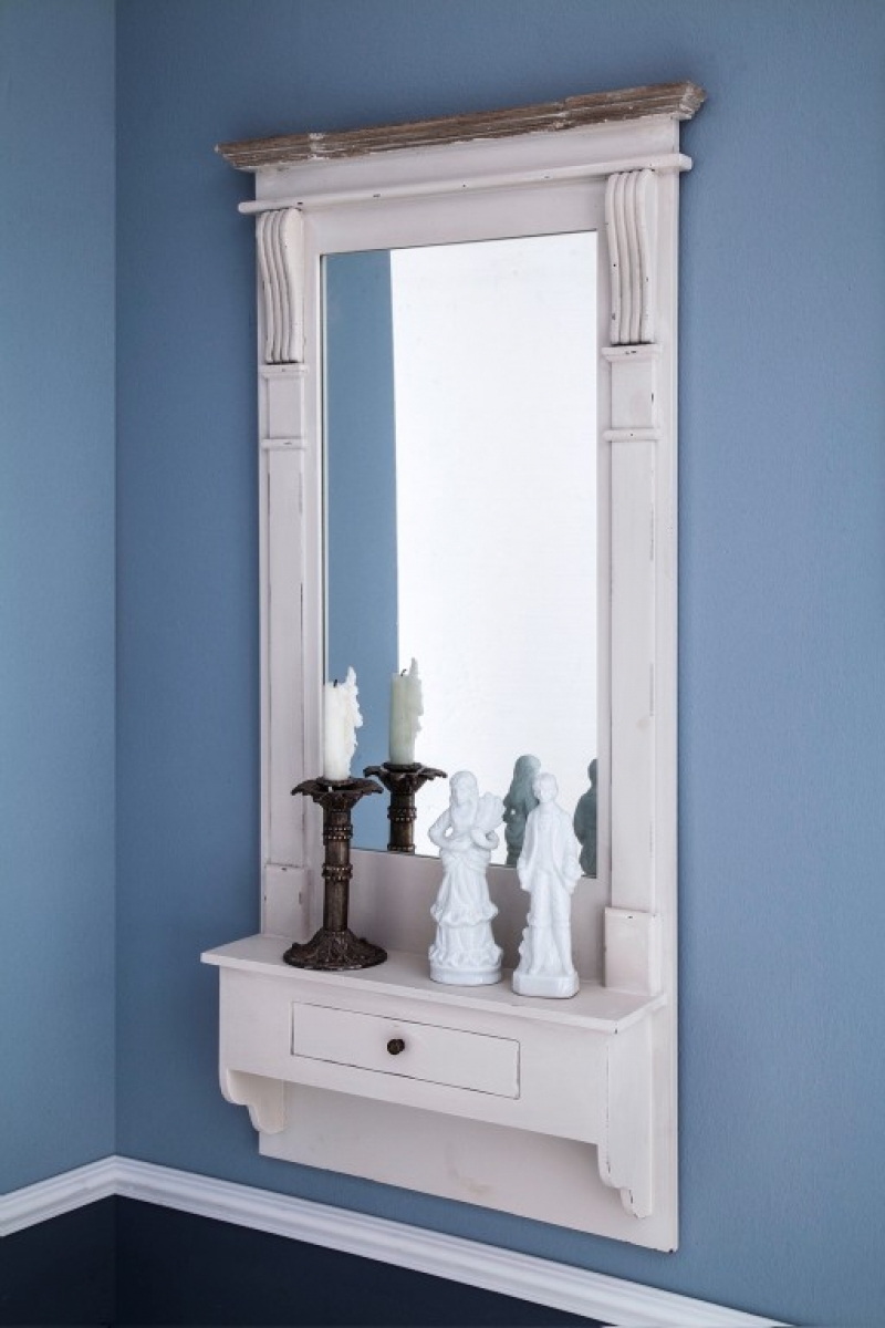 Zrcadlo s poličkou nadchne každého, kdo nemá rád povalující se hřebeny a kartáče. Tady je jednoduše uklidíte do malé zásuvky, kterou skrývá polička, jež je součástí zrcadla.