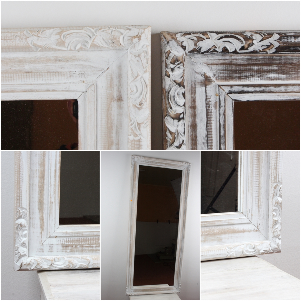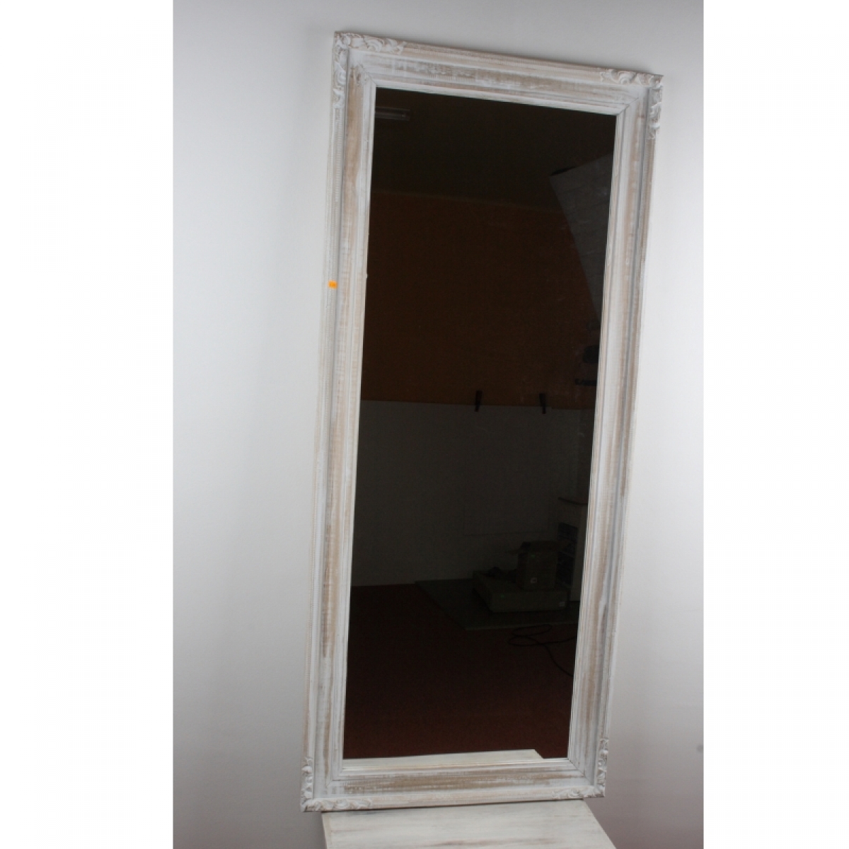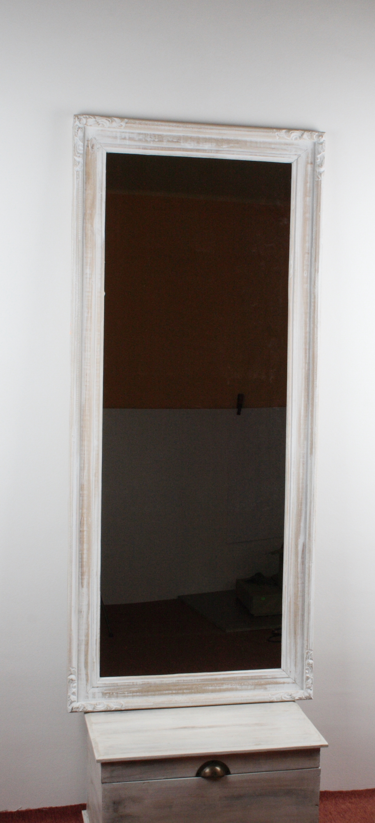 Zrcadlo s bílým rámem s patinou s rozměry 60 x 160 cm