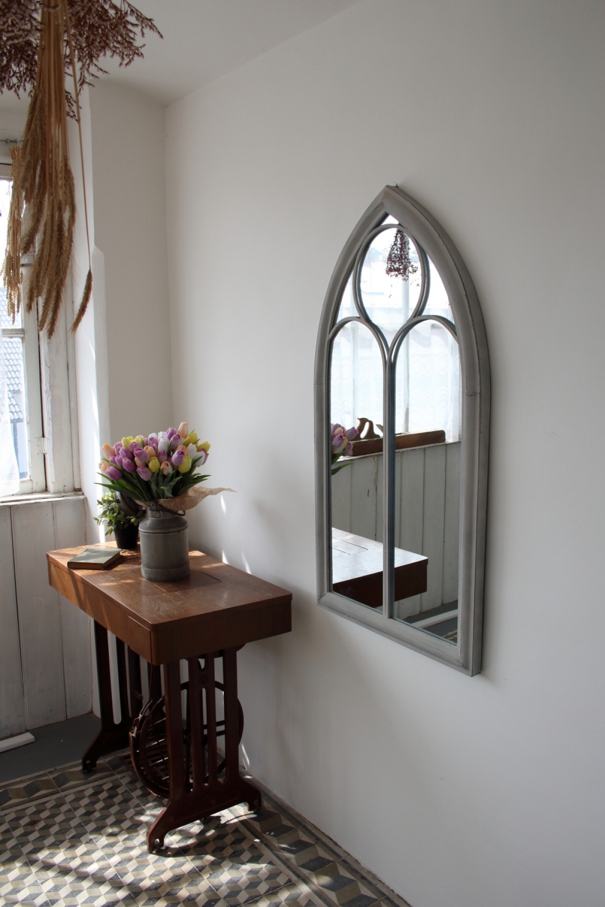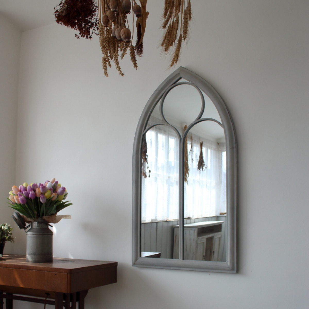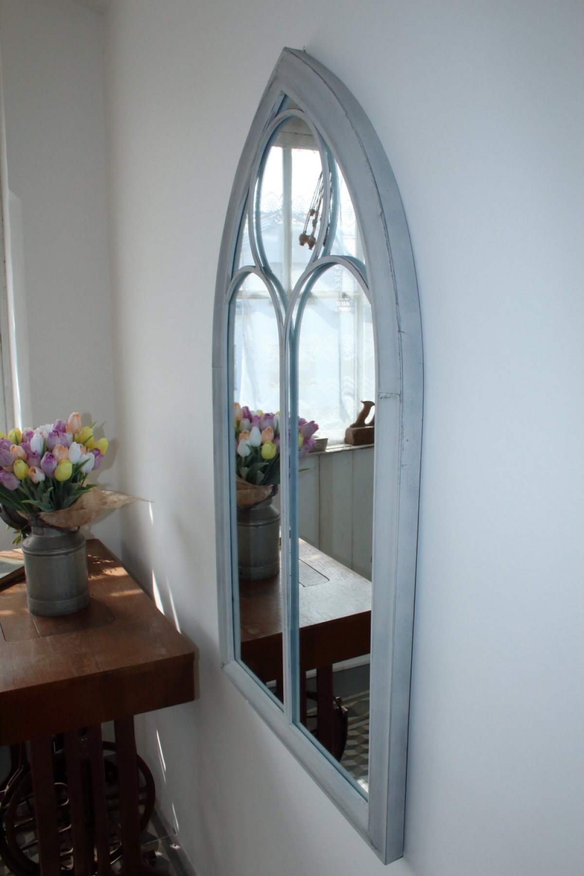 Zrcadlo s vitráží 61,0x4,6x111,8 cm připomíná stará okna v kostele.