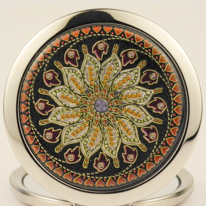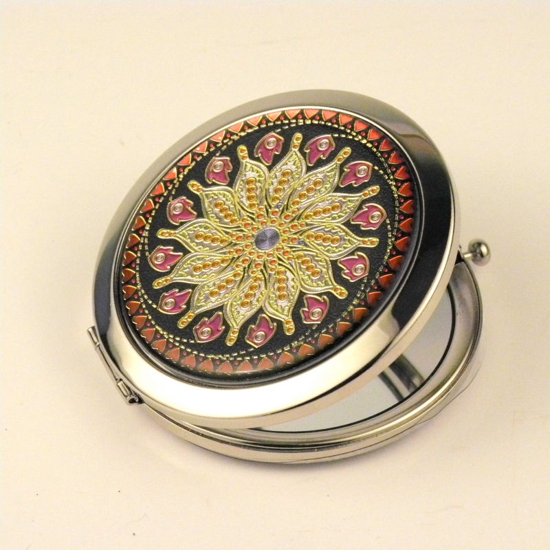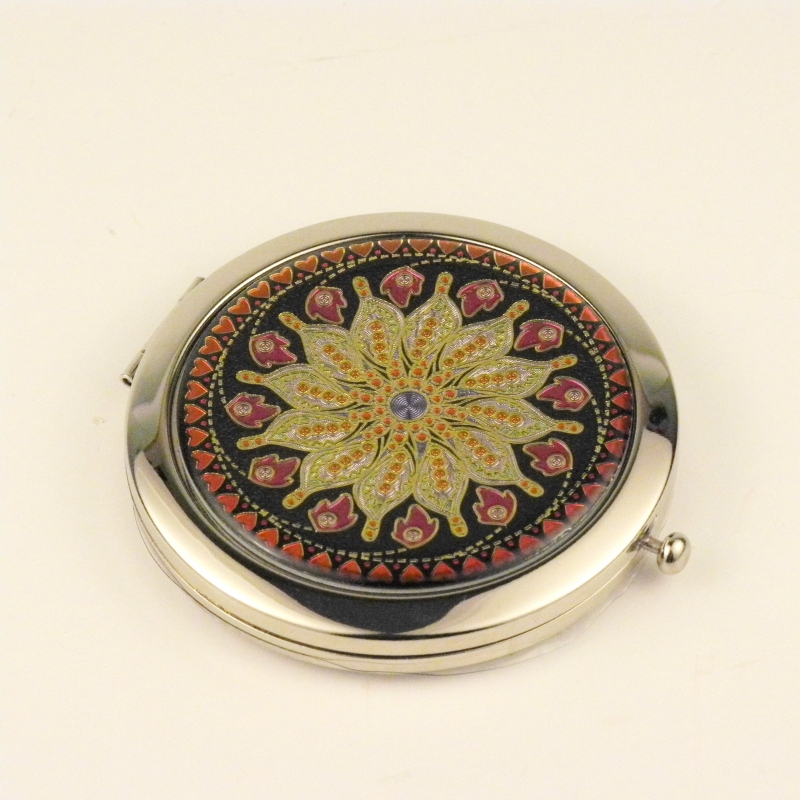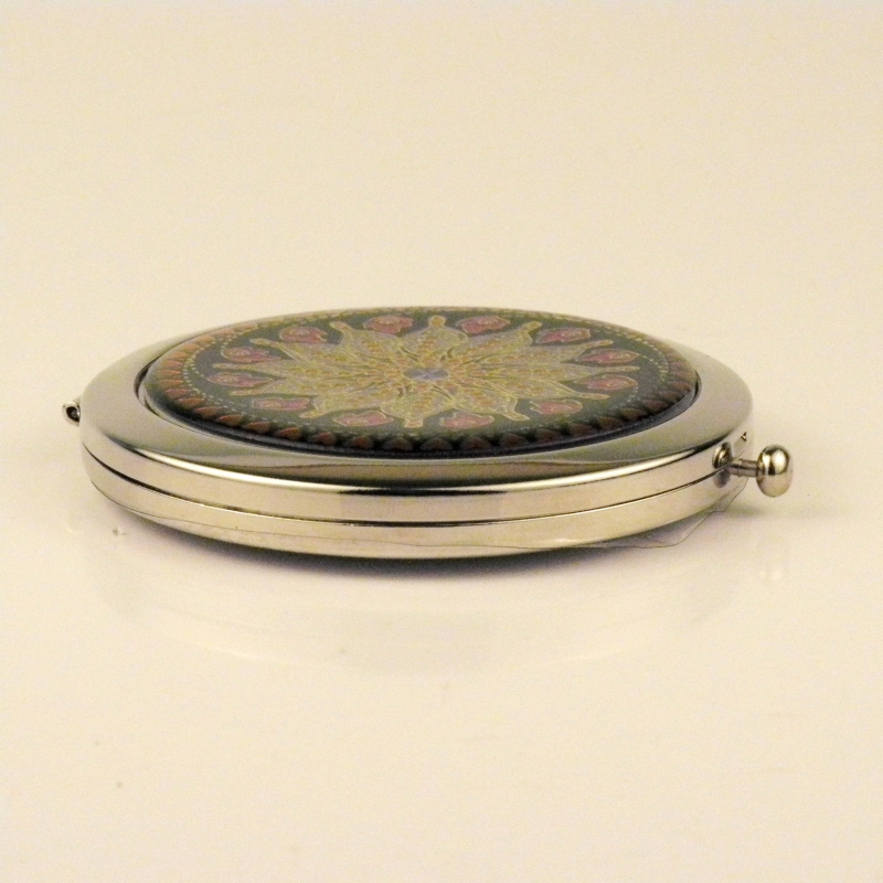 Zrcátko v elegantním obalu chrání kovový obal zdobený mozaikou.