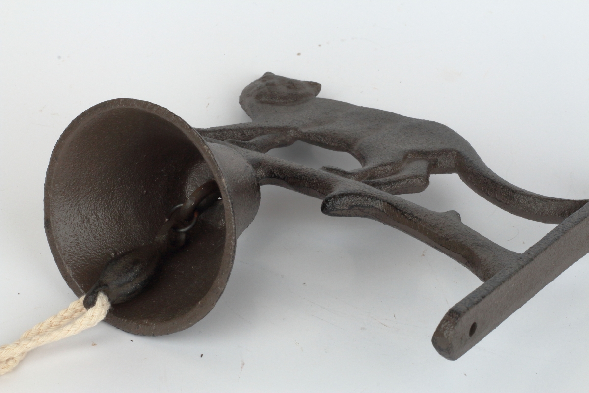 Zvonek litinový 18x18x7,5cm bude krásně vypadat především u dveří nebo na vratech venkovských stavení. Má krásný, čistý zvuk.