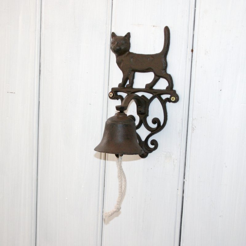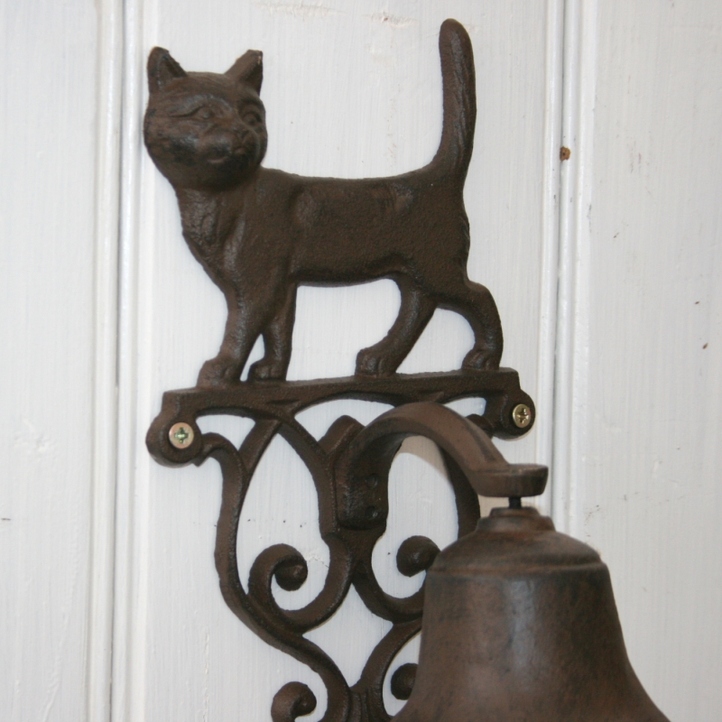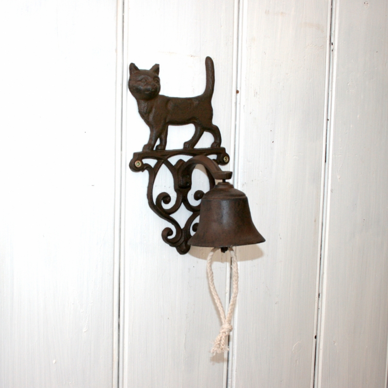 Zvonek s kočkou litina 24x14cm je určen na zavěšení na stěnu nebo trám, kde krásně vynikne a bude na dosah všech rukou, které zatouží po jeho zvonění.