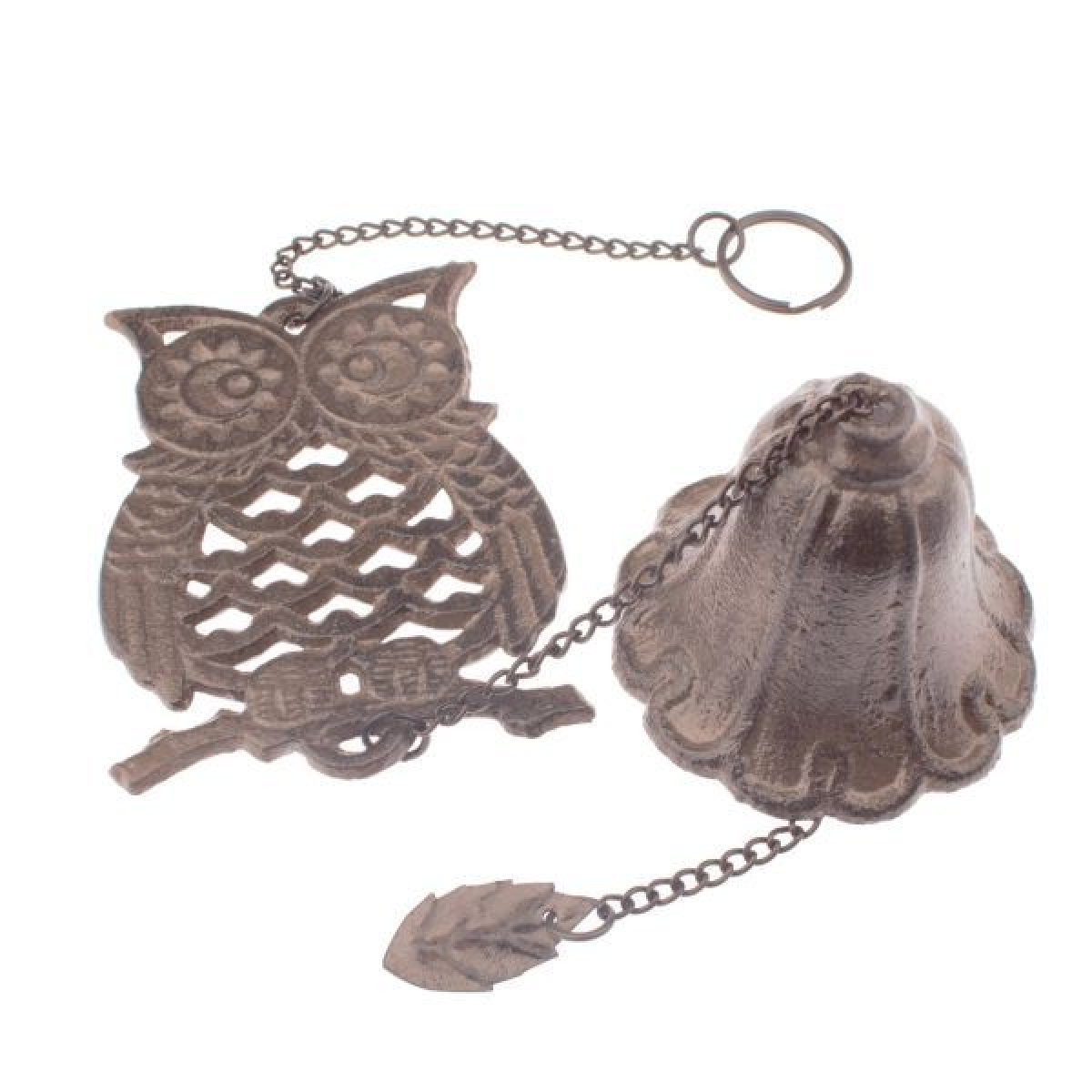 Zvonkohra z litiny s řetízkem s motivem sovy